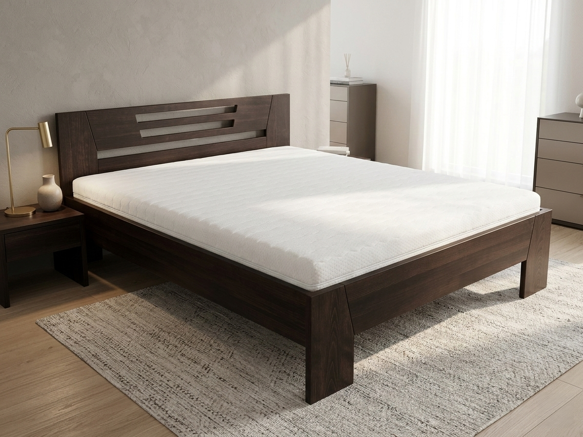 Postel Meryl je unikátní model, který nenajdete v nabídce žádného jiného výrobce. Je výsledkem vlastního návrhu studia Migo, které vsadilo na originalitu a netradiční konstrukční řešení. Typickým znakem jsou atypické spoje mezi nohami a čelem postele, doplněné o odlehčující výřezy.